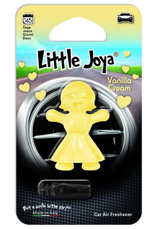 Ovocná vůně Little Joya Vanilla creme - vanilkový krém. Umístění do ventilační mřížky interiéru pomocí vidlice na zadní straně. Výdrž cca 45 dní.